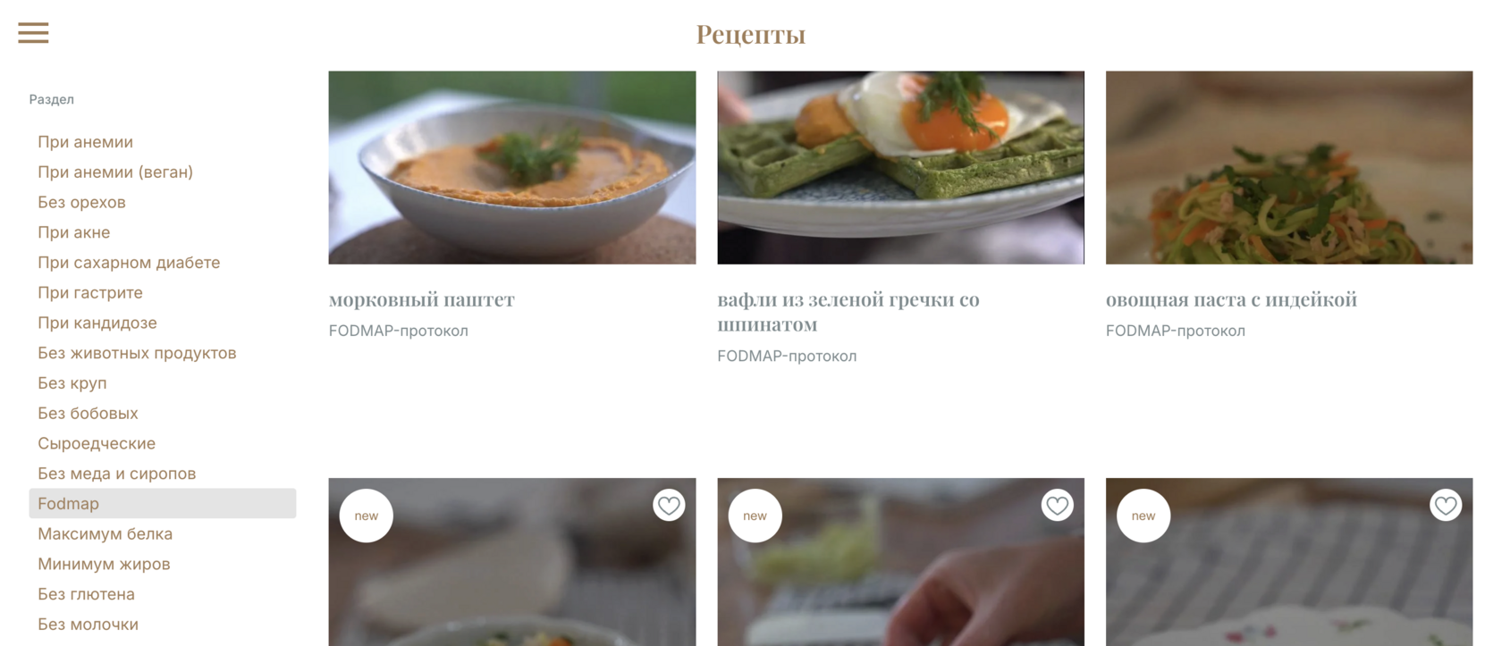 А еще в разделе «Рецепты» появился отдельный фильтр FODMAP. Он помогает быстро находить блюда, которые подходят при чувствительном ЖКТ, СРК, СИБР и адаптировать рацион под текущее состояние.