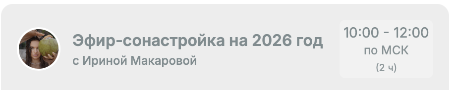 29 декабря в 10:00 по Москве основатель платформы, Ирина Макарова, проведет для вас медитативный эфир, посвящённый осознанному завершению 2025 года и мягкому входу в 2026.